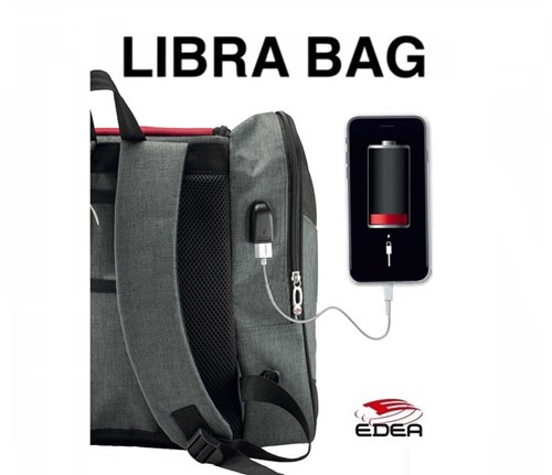 Der Libra von Edea ist angenehm zu tragen und lässt mit seinen diversen Fächern keine Wünsche offen. In der unteren Außentasche befindet sich ein Regenschutz und an der Rückseite ein externer USB - Anschluss.